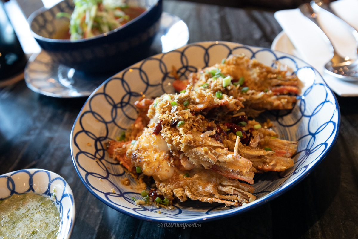 We loved the Grilled River prawns and steamed blue crab it was so sweet and fresh! Thai dishes we recommend are Caramelized spicy chicken wings and Sour sea bass soup boiled with tamarind-ginger and spring onions The fish is so fresh the taste is mild and yummy! For Thai dessert, Babe loves the Mango with sticky rice! Sweet mango with soft sticky rice is a must when you stay here!