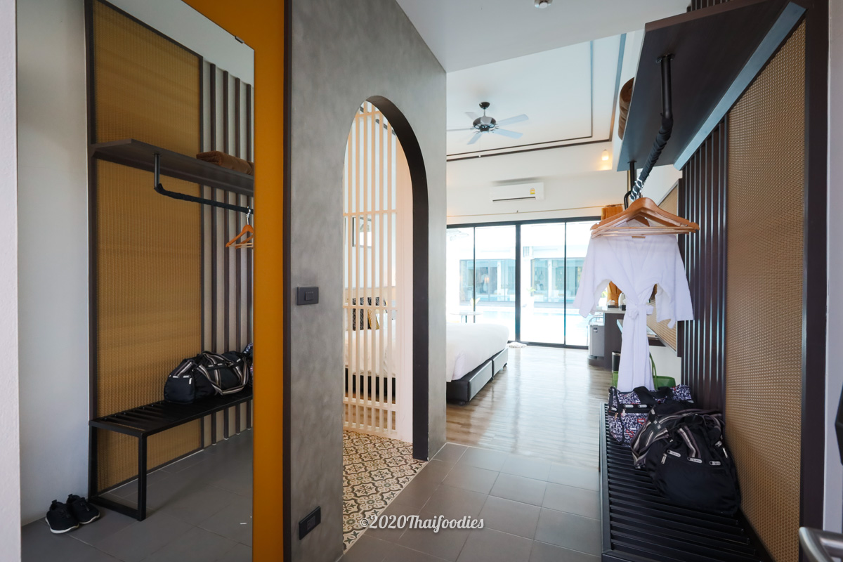 The room has a comfy 8-foot King-size bed with a dining table, a safety box, and a bathroom with all the best toiletries, bathrobe, sandals, towels, hot water, and coffee machine are available. The pool access room also has a nice balcony to sit next to the pool where you can chillax by the nice pool and garden!