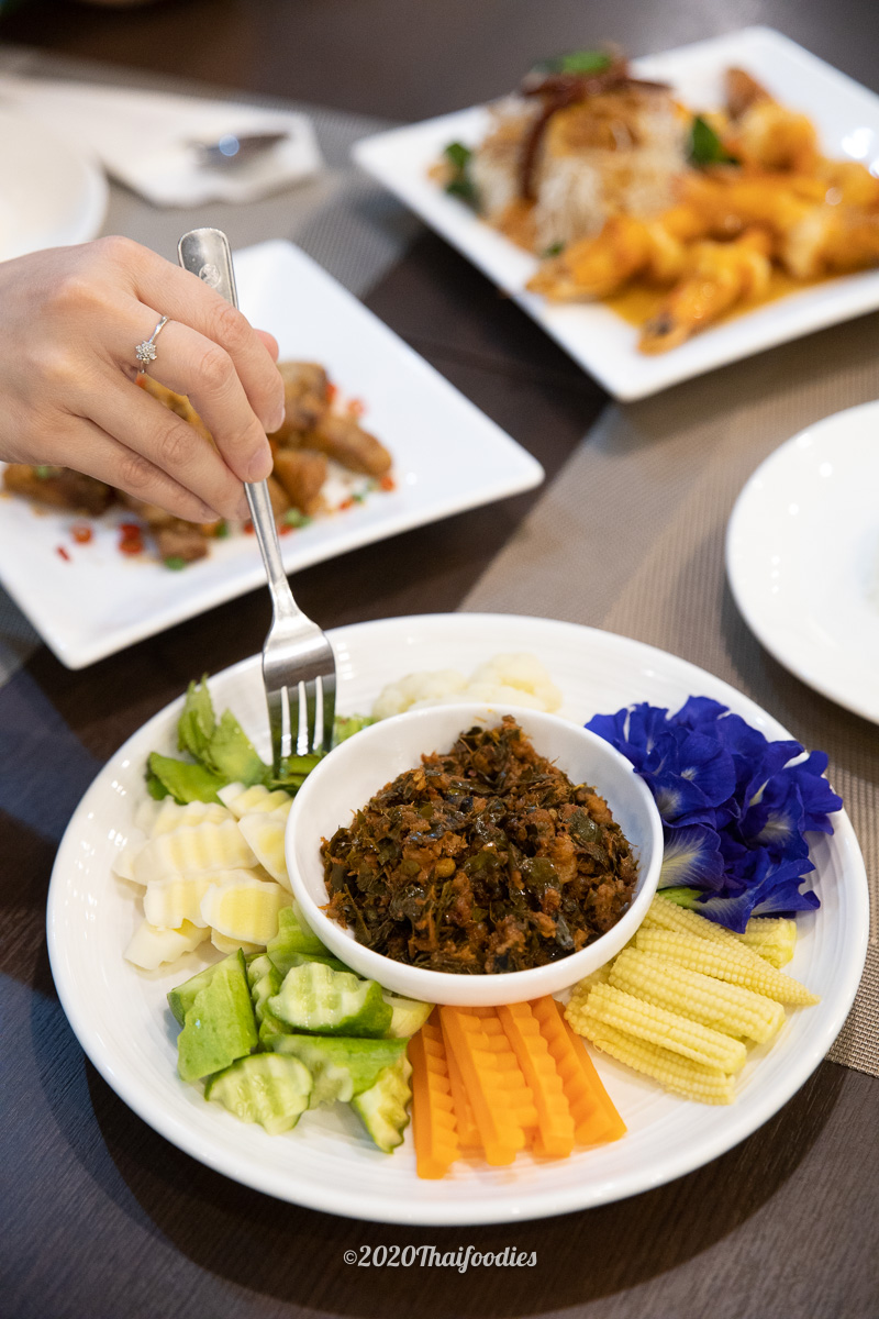 We ordered Chamuang vegetable stir fry with pork & chili paste served along with fresh vegetables.