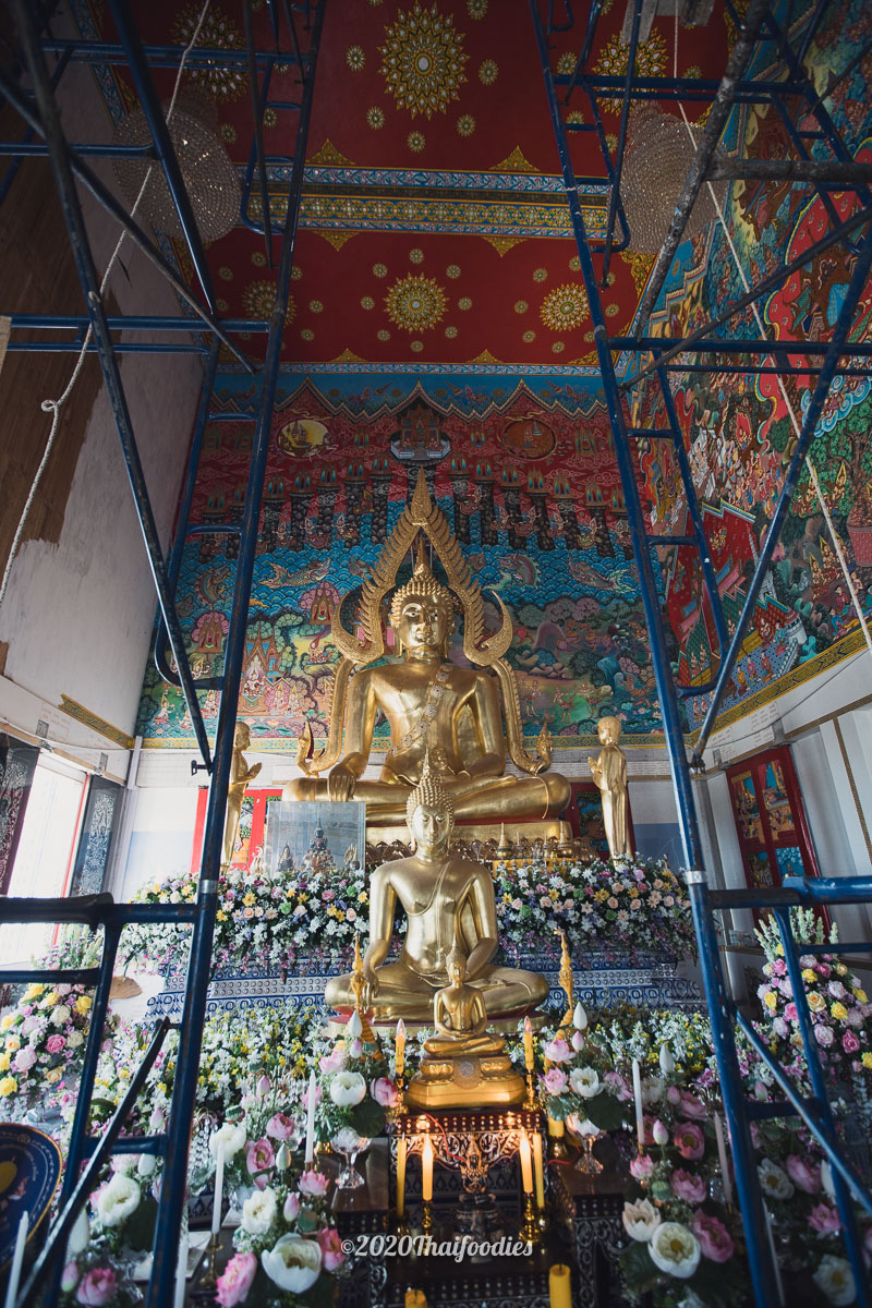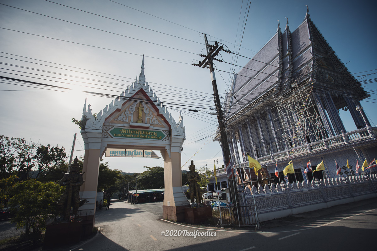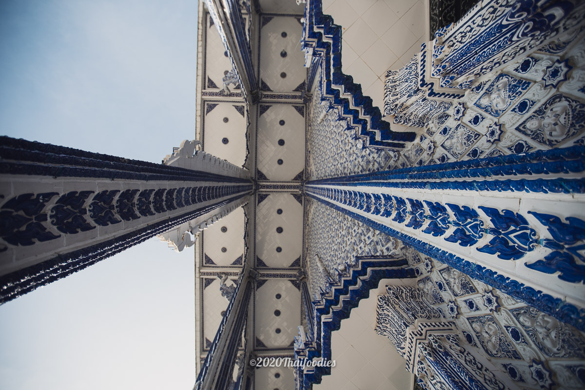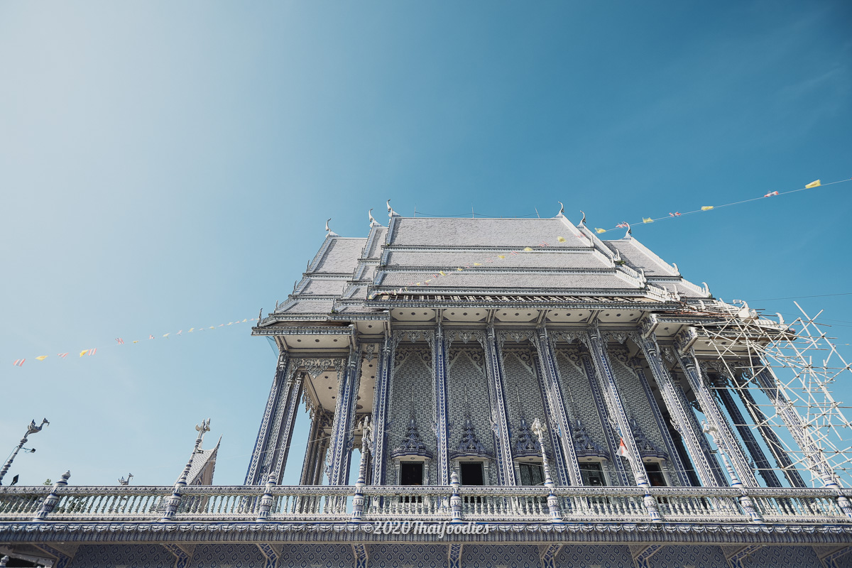 After we checked in we decided to drive to a famous art temple at "Wat Paknam Khaem Nu" The huge temple is constructed from dark blue ceramics and you can go to make respect and pray inside the temple