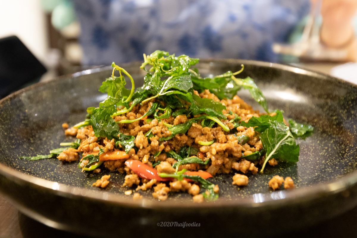 Minced pork stir fry with basil and Glass noodles with spicy and sour salad Rice noodles with pork in gravy sauce, Thai a la cart food at Pathummat is so delicious....
