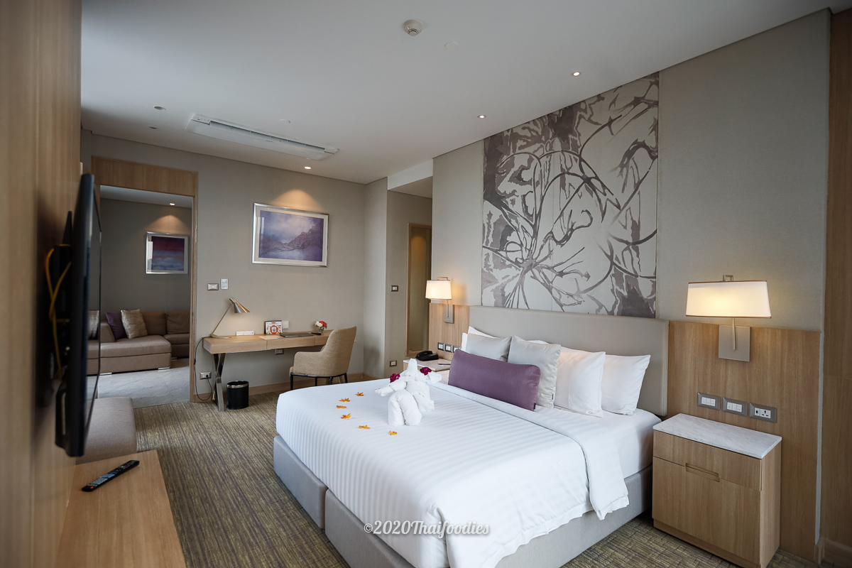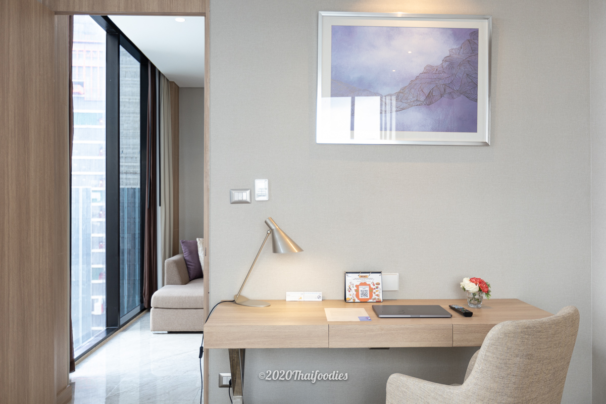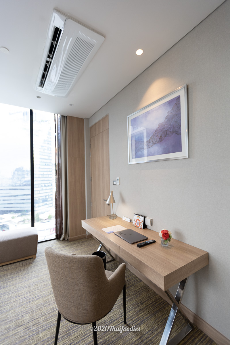 and a massive bathroom with a separate bathtub. This room offorrs a stunning view of Bangkok from every window including the greenery of beautiful Benjasiri Park.