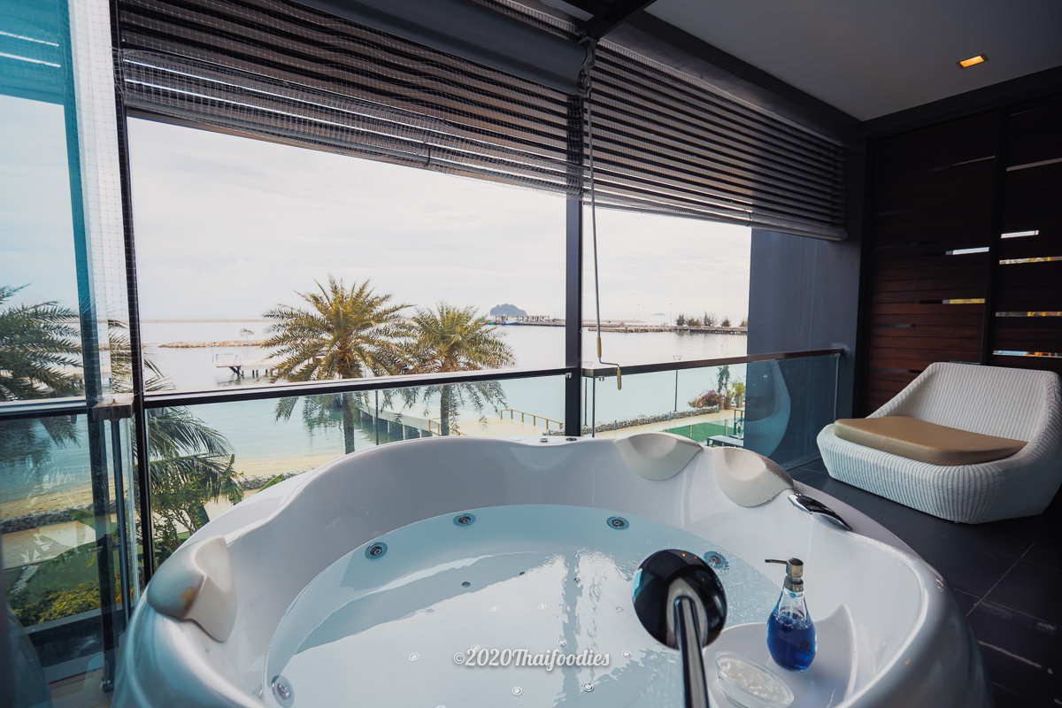 We stayed in a Deluxe sea view room (61.95 sq.) which features a huge and comfy bedroom with a LED starlight ceiling, a big bathroom, a large balcony with a private Jacuzzi, and stunning views of the swimming pool and Klongwan beach.