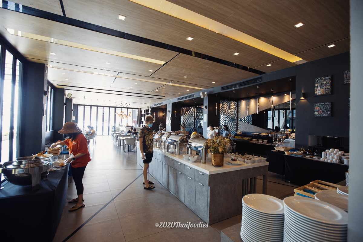 For breakfast, the hotel serves a buffet (Due to Covid19 everyone has to wear a mask and plastic gloves when you get food from the buffet line) I like Thai food, fried rice, and pork curry. They have coffee, bakery items, a variety of local fresh fruits.