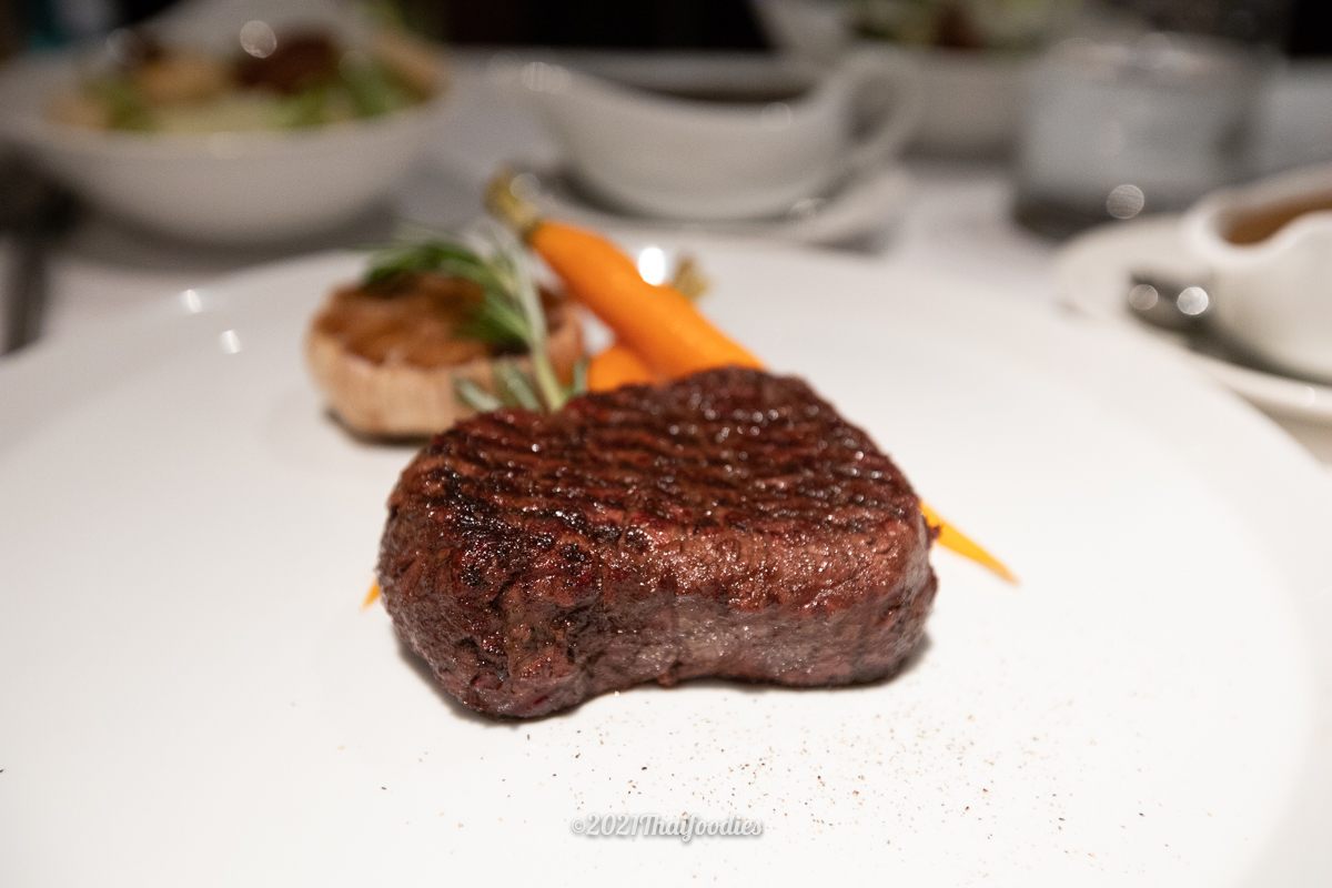 “Stockyard Beef Tenderloin gold 200 days” 1,900++ thb The dainty Beef is tender and juicy cooked perfectly well. The perfect combination serves along with baby carrot and peppercorn sauce