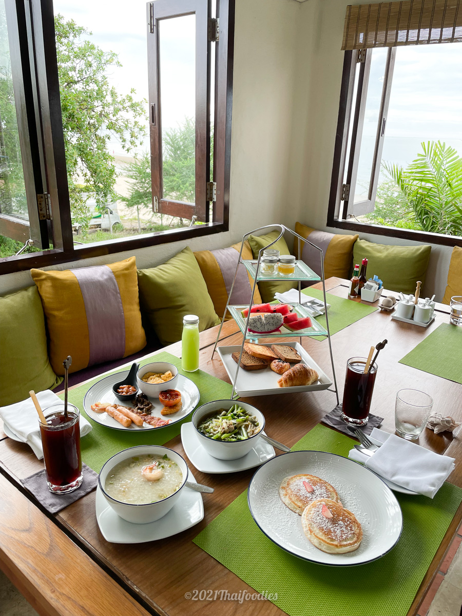 The Aleenta restaurant has a nice sea view of Pranburi and they also serve an a la carte breakfast here, all staff members wear a face mask all the time.