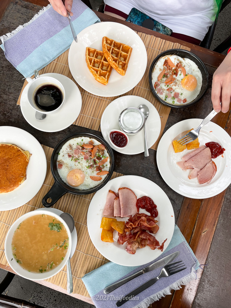 For the local food menu they have Pork or chicken porridge, Steamed jasmine rice topped with Thai style omelette with minced pork,