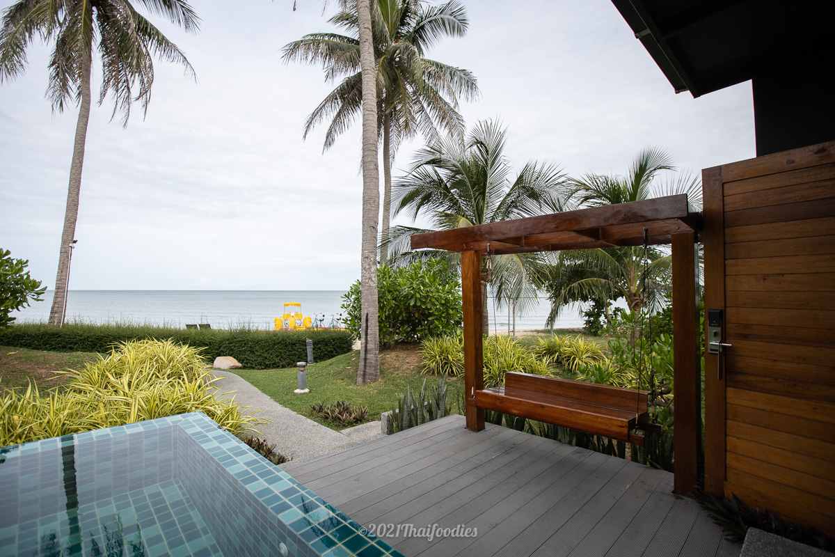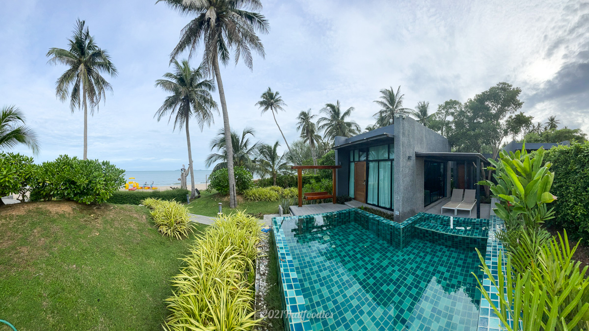 in a private pool villa along Suanloung Beach Bangsaphan. We stayed in a PREMIER BEACH FRONT POOL VILLA which has a private pool with an amazing sea view.