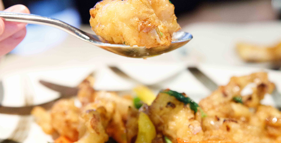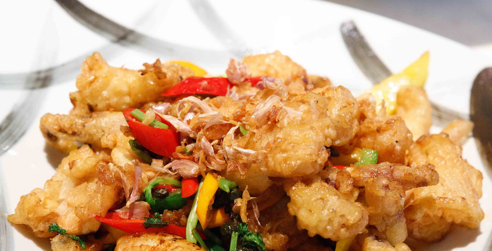 Another main dish to recommend is Squid stir fry with 9 kinds of salt (THB 550) but don’t let its eccentric name fools you. Octopus (squid) is cut into nice pieces and stir-fried with salt & chilies that one can smell its aroma in the air. A well-balanced taste of chilies and salt is submerged into every chewy piece of squid which delivers a flavorful outburst. Thai-styled pizza is another recommendation which we tried Pizza curry halved with Green curry pizza with scallops. A thin-crusted cheesy pizza comes with a picante flavor of curry very scrumptious and a perfect companion to salmon eggs, while the scent of green curry powder will make you mouth water when paired with Hokkaido scallops. Their Thai-fusion food is undoubtedly unique and delish like nowhere else!