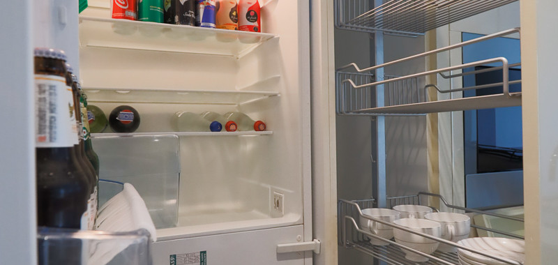 We stayed in a two-bedroom suite (120 Sqm). The big room features full facilities and lots of free space. It's very comfy for a family of 4 people. A full kitchen area with all kitchenware is ready for your in-room cooking with a dining table, microwave, coffee machine, toaster, electric stove, etc.