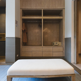 The large bathroom boasts His and Hers sinks and is fully equipped with amenities. The bathroom has a separate bathtub and toilet area. There is ample closet space, a safe, bathrobes, and a hairdryer.