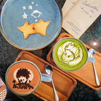 • Beautiful latte art (try the matcha or cocoa!)• Premium matcha options (Hoshi/Hikari) starting at 150 THB• Cute star-shaped butter cookies